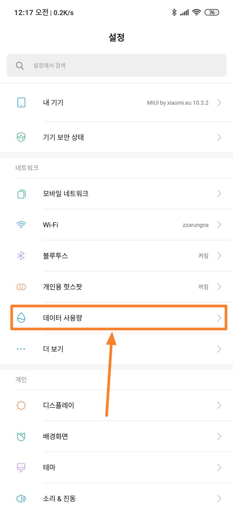 샤오미 홍미노트7 데이터 사용량 확인 및 데이터 제한하는 방법