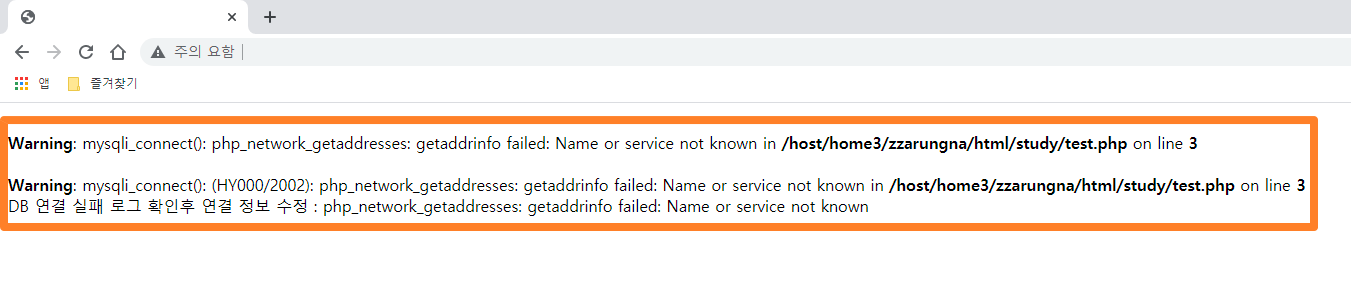 DB연결 실패 로그 - php_network_getaddresses: getaddrinfo failed: Name or service not known