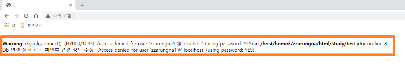 DB연결 실패 로그 - mysqli_connect() HY000/1045 Access denied for user to using password: YES