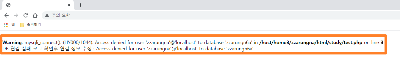 DB연결 실패 로그 - mysqli_connect() HY000/1044 Access denied for user to database