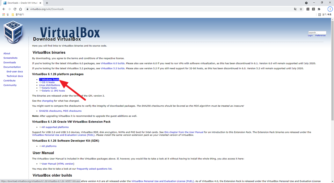 이곳에서 운영체제에 맞는 메뉴를 선택하시면 됩니다. 저는 현재 사용하는 운영체제가 윈도우10이기 때문에 Windows hosts를 선택했습니다.