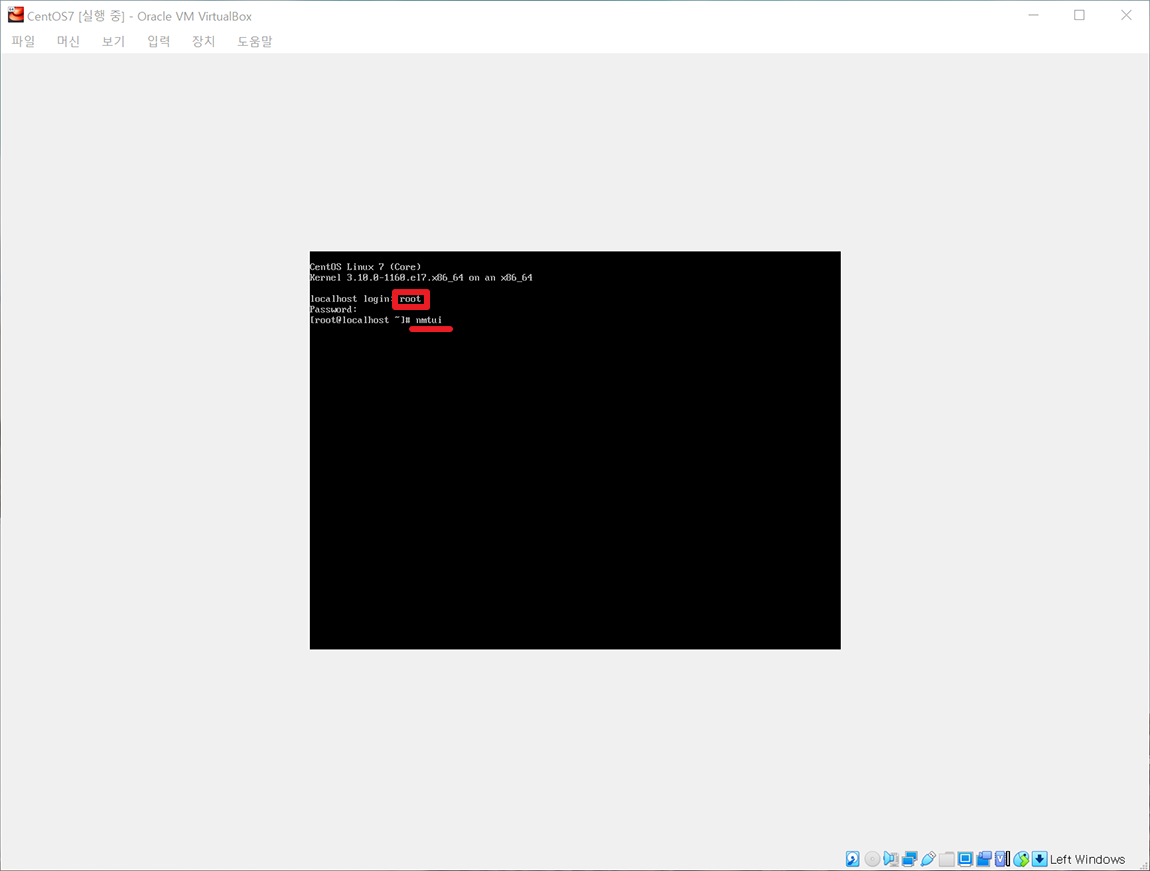 root 계정의 로그인이 완료 되었다면 nmtui 명령어를 통해 네트워크 설정을 추가로 해주셔야 합니다.