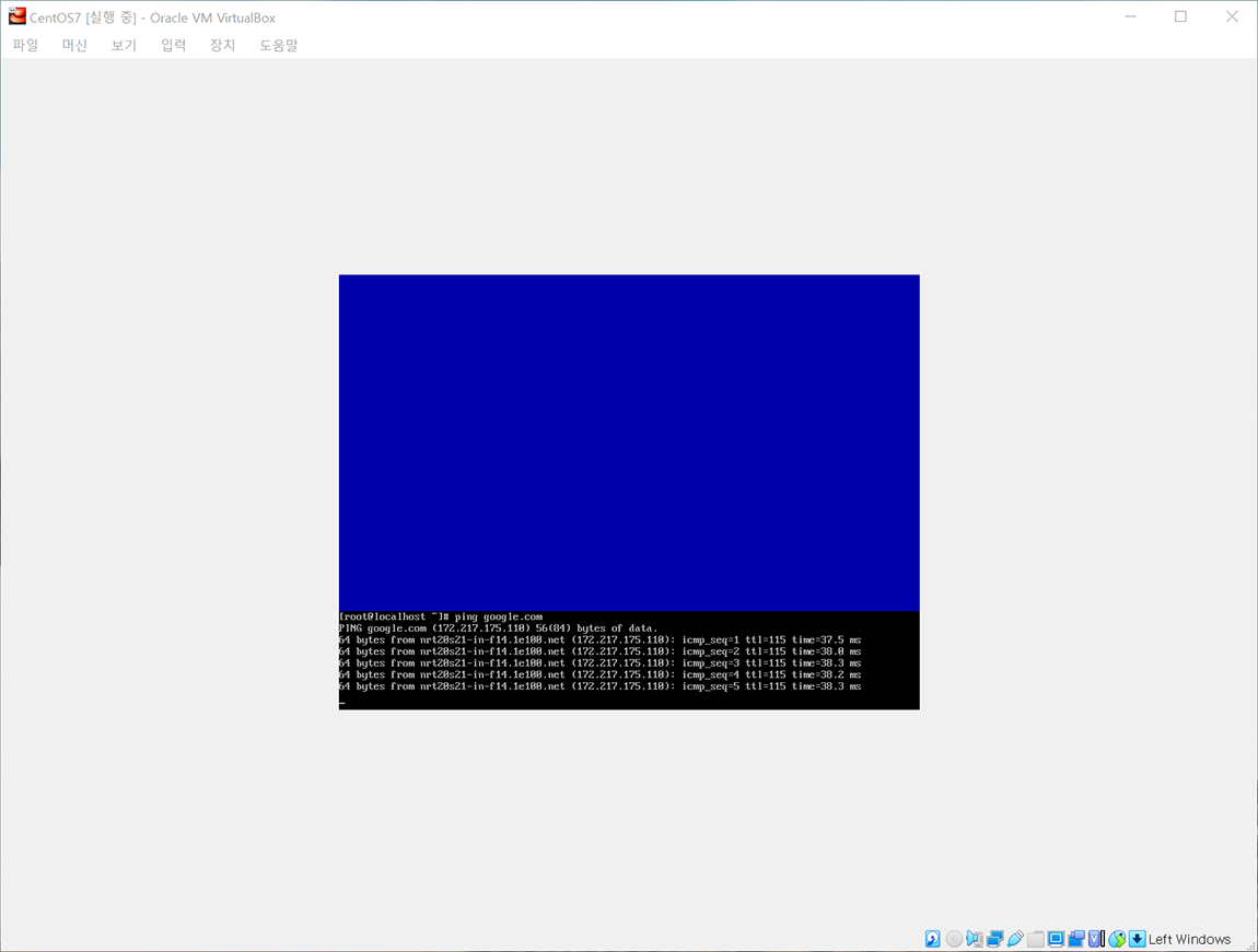 네트워크 설정 후 인터넷이 잘 되는지 확인하기 위해 ping google.com 명령어를 실행해 확인하시면 됩니다. 아래 이미지와 같이 표시되면 정상적으로 인터넷 사용이 가능한 것이니 앞으로 필요한 패키지나 파일들을 명령어를 통해 설치할 수 있습니다.