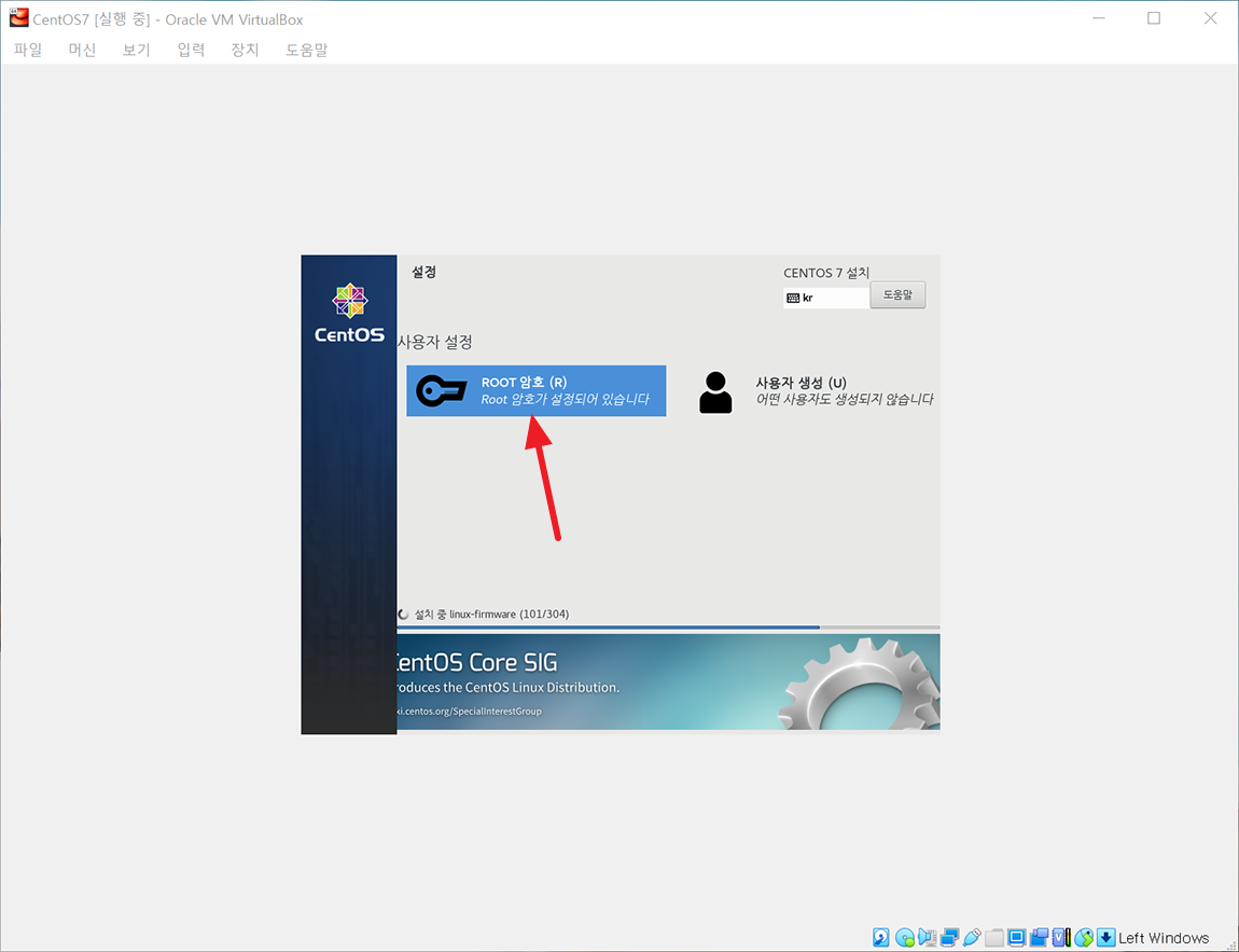 ROOT 암호 및 확인에 모두 입력 후 완료 버튼을 누르고 반응이 없다면 다시 완료 버튼을 누르시면 됩니다.