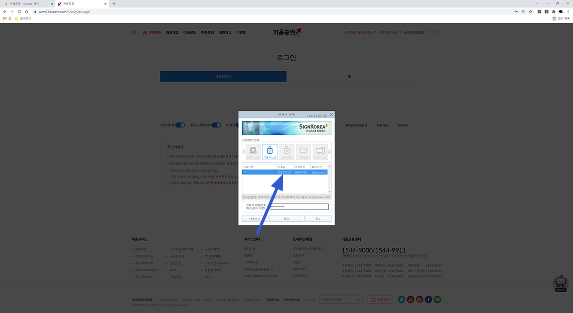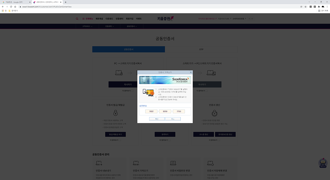 키움증권 인증서 갱신하는 방법 영웅문S 글로벌 앱 기준