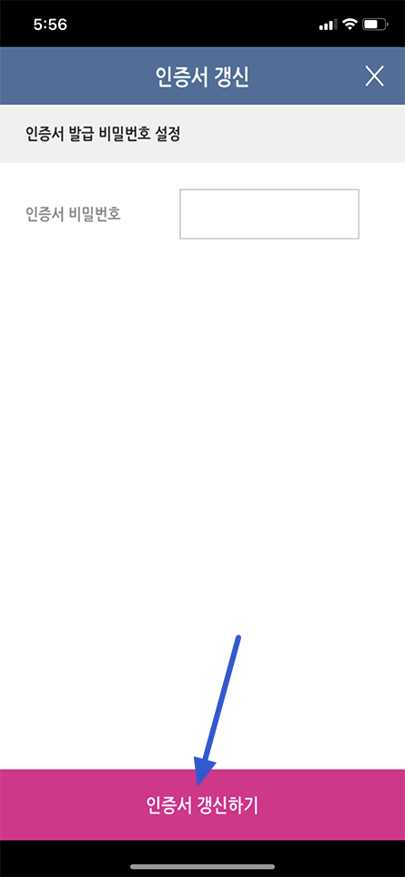 인증서 비밀번호 입력 후 인증서 갱신하기 선택.
