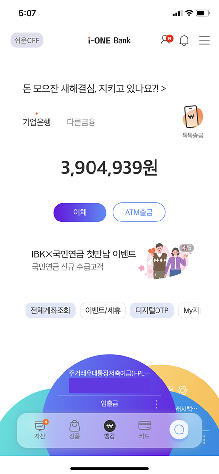 저의 모든 자금의 흐름은 예전부터 주거래 은행으로 기업은행을 사용했기 때문에 어쩔 수 없는 선택이었습니다. 돈을 이리저리 이체하며 현금 확보를 위해 항상 확인 합니다.