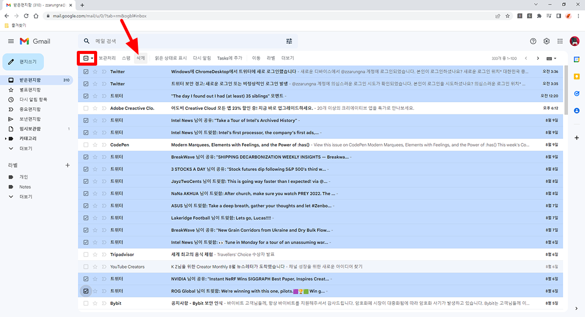 구글 메일함 일괄 삭제하는 방법