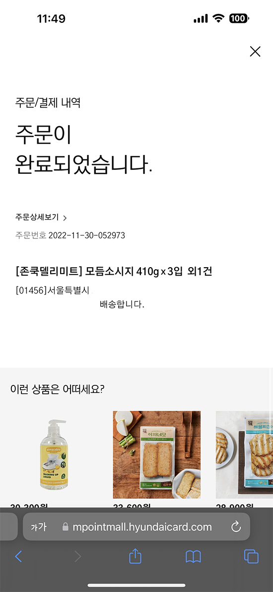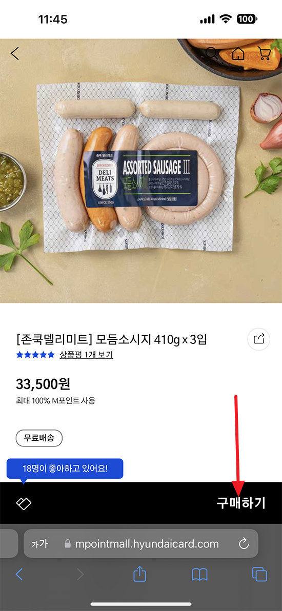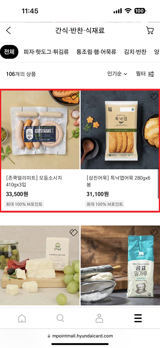 현대카드 M 포인트로 소시지와 어묵 결제에 성공했습니다.