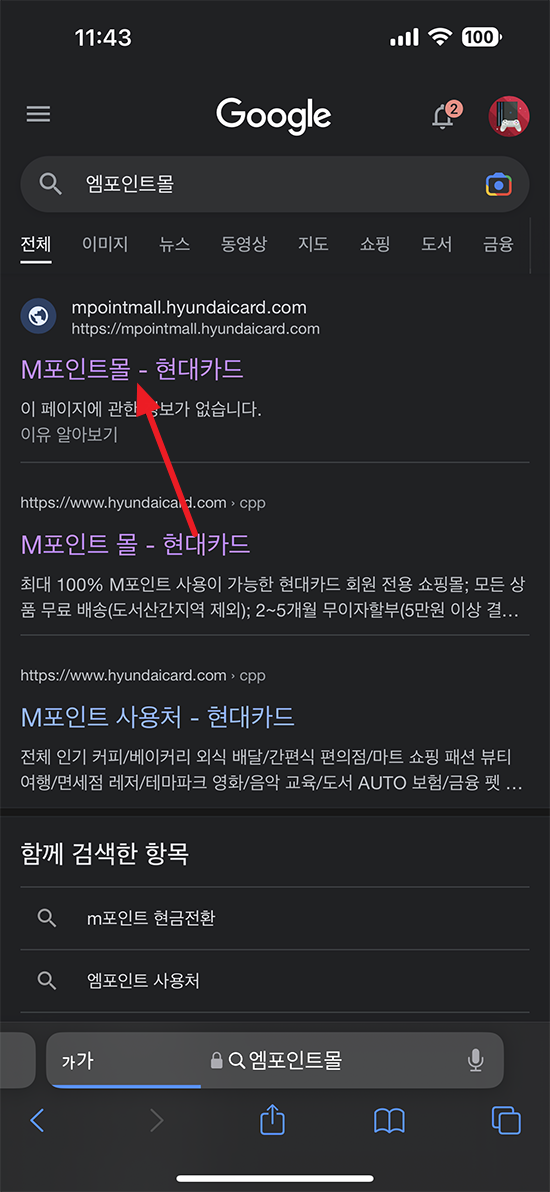 이제 휴대폰에서 인터넷 가능한 앱을 실행하시고 검색창에 엠 포인트몰을 검색하시면 됩니다. https://mpointmall.hyundaicard.com/ 여기로 바로 링크 타고 가셔도 됩니다.