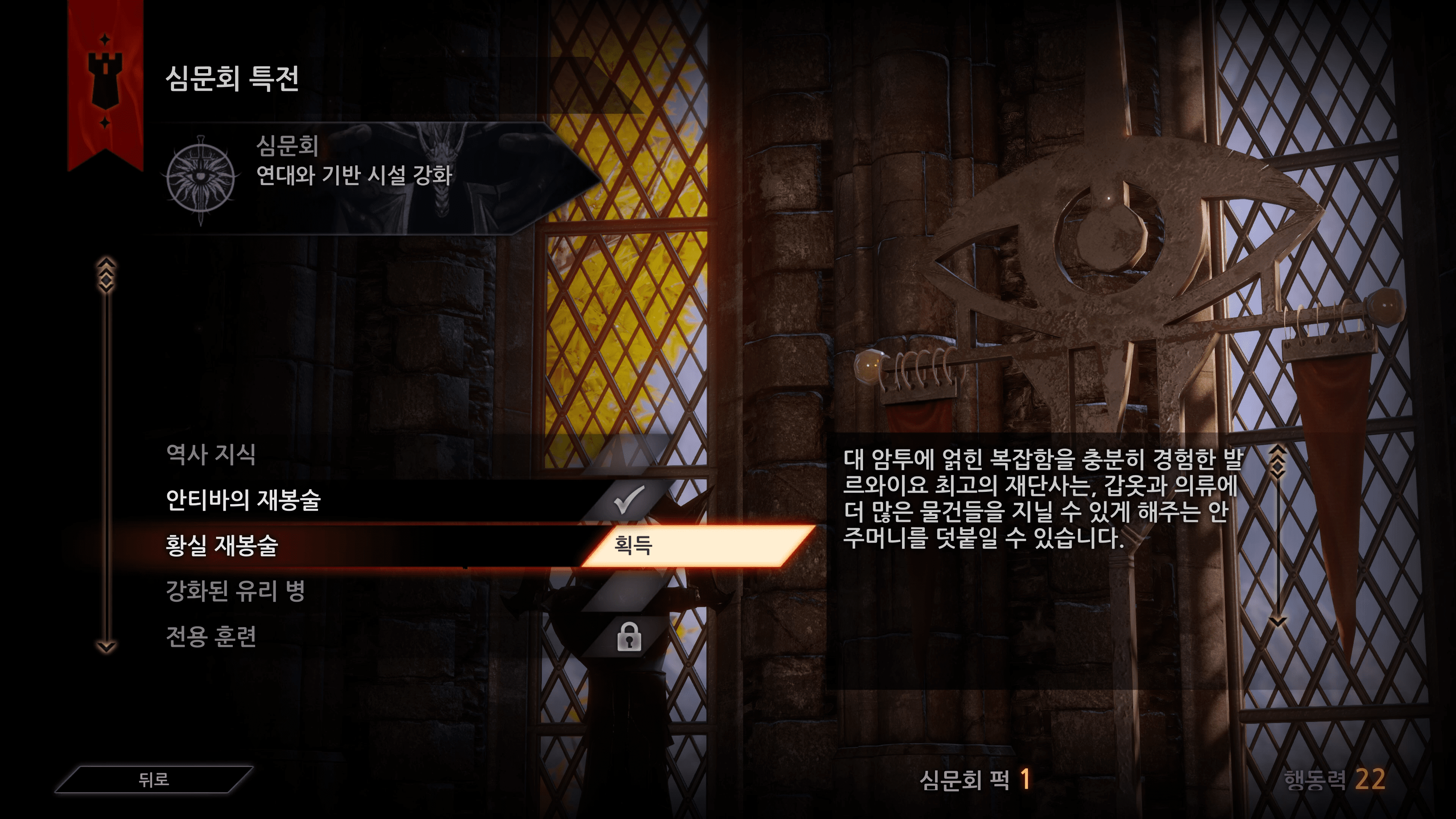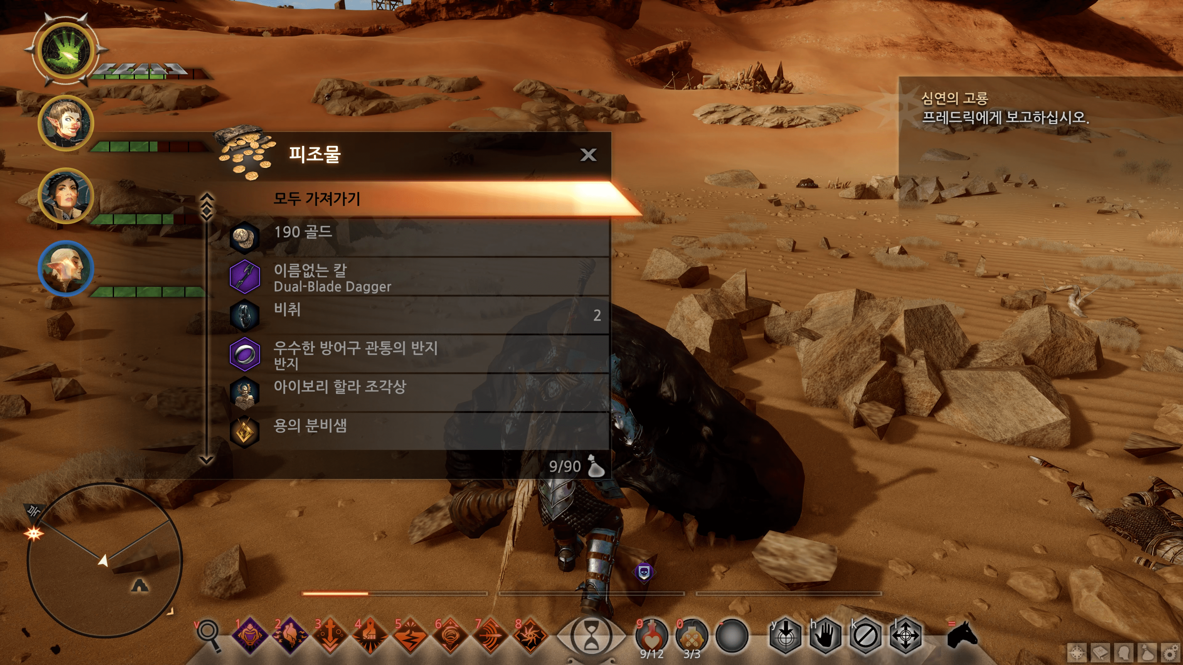 드래곤 에이지 인퀴지션 게임은 무기 개조, 제작, 물약 제작, 재료 모으기, 거점 업그레이드 및 시설 강화 등 게임을 하면서 익혀야 할 내용이 워낙 많다 보니많다보니 처음엔 너무 복잡하게 느껴지기도 했습니다. 게임 중반 이후에도 아이템을 맞추고 각종 스킬을 올리기 위해 시간을 많이 썼던 것 같습니다.