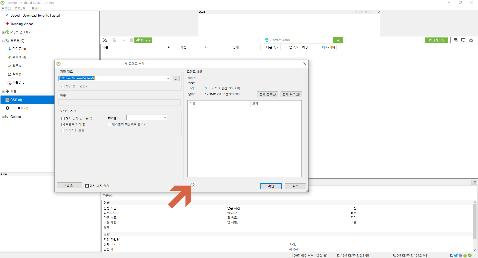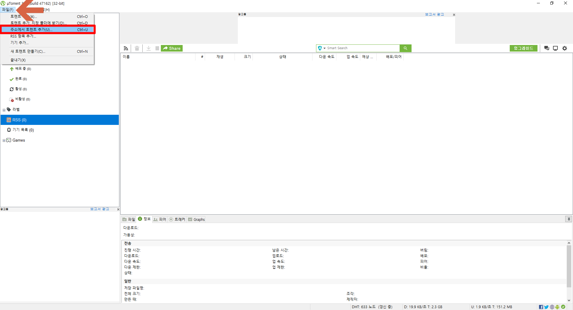 토렌트 마그넷 주소 파일 다운로드 메뉴 위치